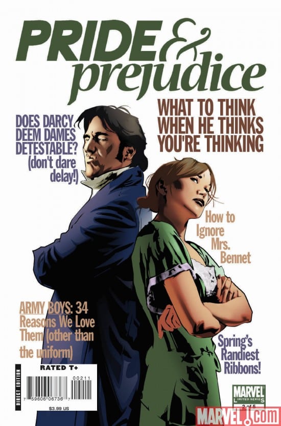 Marvel se enorgullece en presentar las tres grandes adaptaciones al cómic de las obras maestras de Jane Austen. En Orgullo y prejuicio, viajamos a través de los complejos círculos sociales británicos de Lizzy Bennet y su adorable, a la par que excéntrica, familia. En Emma cobra vida la heroína más precoz de Austen. Sentido y sensibilidad da vida al mundo de Elinor y Marianne Dashwood, dos hermanas huérfanas, obligadas a abrirse camino en la vida a la búsqueda del amor y la felicidad. Por último, La Abadía de Northanger se acerca a los terribles secretos que cobija una antigua abadía.